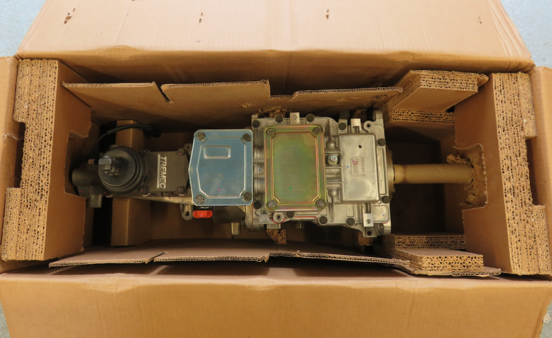 As I have to drill the bell housing for the fixing bracket it seems the best and least risky approach. I cut away the cardboard box leaving the gearbox perched nicely in the support packaging.